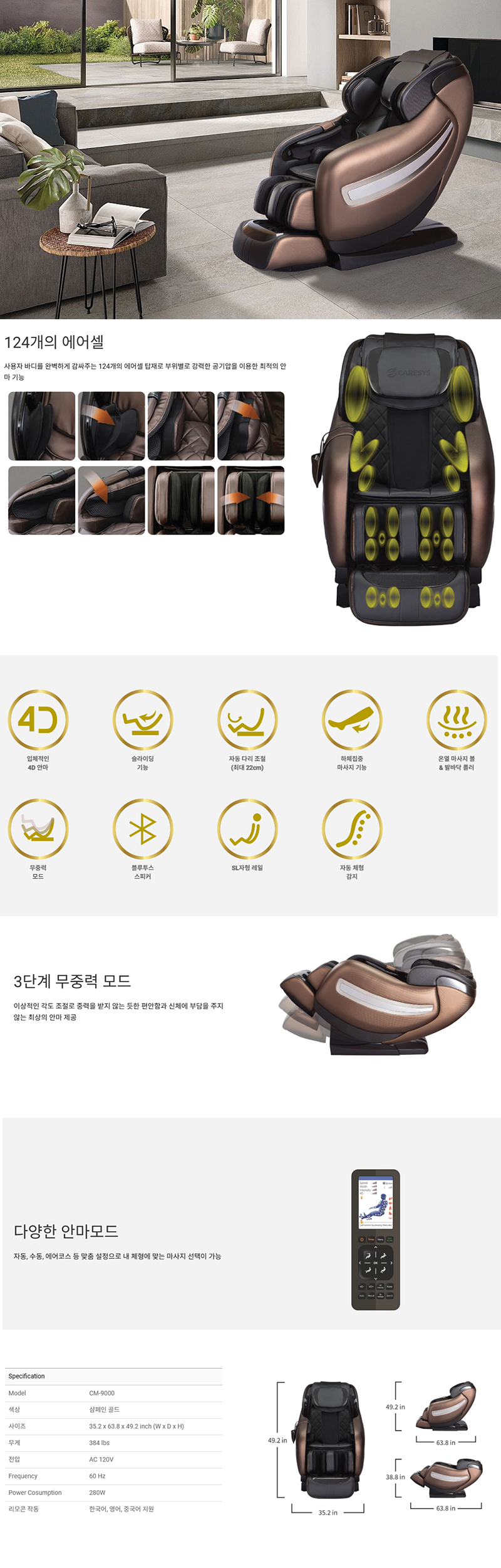 제품크기(W x H x D) 35.2 x 49.2 x 63.8 inch